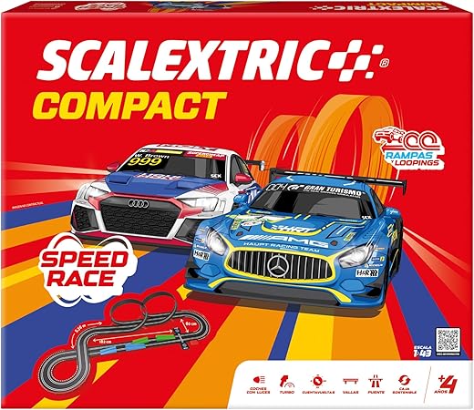 Hay juguetes que pasan sin hacer ruido y luego están los que entran directos en modo “quiero montarlo ya”. Este SCALEXTRIC Compact Speed Race tiene justo ese efecto: una pista completa en escala ...