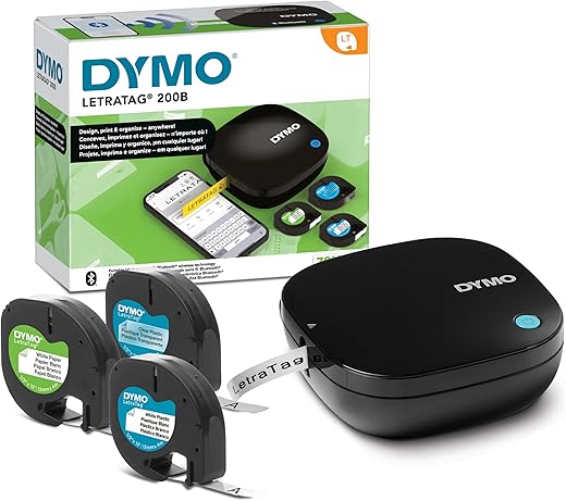 DYMO LetraTag 200B Bluetooth Label Maker | Compact Label Printer | Connects via Bluetooth Wireless Technology to iOS and Android | Includes 3 Label Tapes