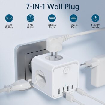 Si en tu casa siempre falta un enchufe más, este ladrón múltiples tomas 7 en 1 te va a arreglar la vida. Con un solo dispositivo ganas varias tomas extra para conectar portátil, cargadores, ...
