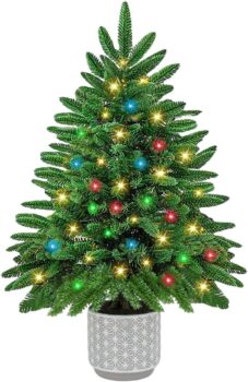 Para un look navideño moderno y brillante, este árbol blanco con efecto escarcha es espectacular. Ya tiene un acabado invernal que reduce la necesidad de añadir excesivos adornos. Suele incluir complementos como piñas o bayas incorporadas, ahorrándote tiempo y dinero en decoración extra. Es estable y sus ramas son fuertes para soportar adornos pesados. Echa un vistazo a este árbol blanco en Amazon y crea un ambiente navideño de cuento de hadas.