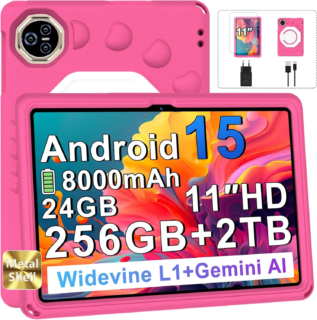2. Tablet Android 15 para niños, 24GB + 256GB — 11 pulgadas con funda EVA