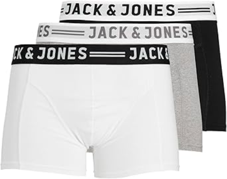 Pack de 7 boxers tipo trunks de Jack & Jones en talla junior (para adolescentes o adultos con cadera estrecha — consulta la guía de tallas antes de comprar). El algodón es suave al tacto, la cinturilla es ancha y no aprieta, y aguantan bien los lavados sin perder la forma.
